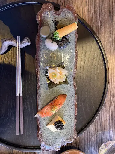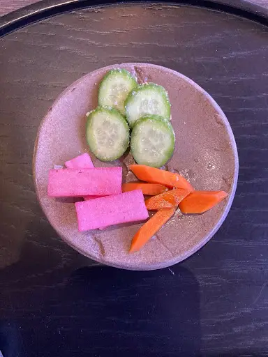 We began the experience with a plate of palate cleansers, consisting of cucumbers, pickled daikon, and carrots. The first bite of these palate cleansers, usually eaten between courses to ‘cleanse’ your mouth of the taste of the previous course, signalled that we were in for a culinary adventure, the simple flavour was done perfectly, and we had finished all of them well before the end of the meal.