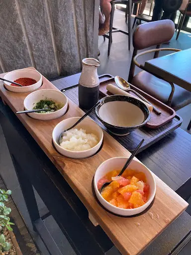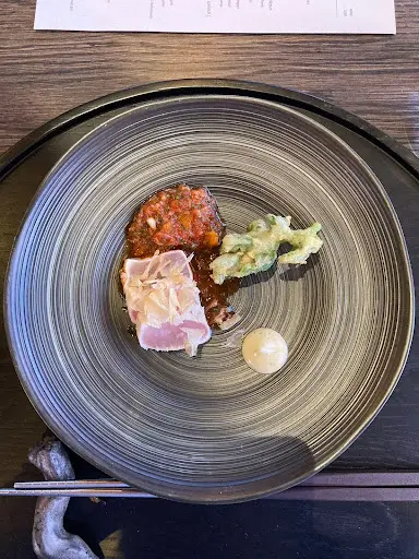 A highlight of the menu was the tableside creation of a chirizu sauce, consisting of citrus, daikon, onion, chives, and chilli powder. Our waiter explained each ingredient as they mixed them together in a suribachi, then pouring it over our plate of gamefish. The mix of fish, citrus, spice and tempura spinach was wonderful. The tempura was light and crispy, reminiscent of a corner tempura restaurant that has been perfecting its craft for the past 50 years.