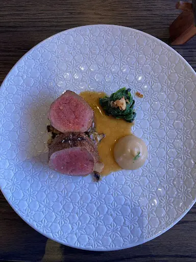 After carefully inspecting each knife, we chose our desired piece and waited for the course to arrive. The course consisted of Kalahari beef that was accompanied by mushroom ragout, spinach, and garlic. The combination of the soft meat, creamy ragout, and crunchy garlic chips made this dish a standout.