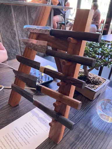 The main dish came with another helping of table service. We were presented with a stylish knife holder with 5 Japanese style damascus steel knives in it. Our waiter informed us that the knives were made by a local South African artisan, Anton Kock, and that we were free to choose whichever knife we preferred.