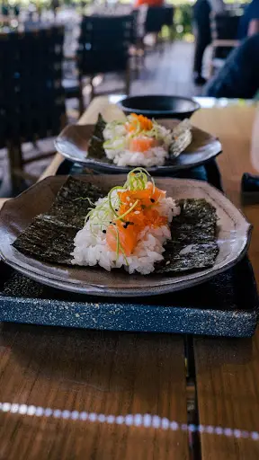 One dish ordered was the salmon rolls, which came with rice, salmon, roe, sesame, and green onions all laid upon a bed of nori seaweed that you wrapped yourself. The roll was fresh, the nori crunchy, with each ingredient complimenting each other.