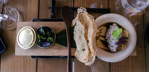 Two highlights of the meal were a wagyu open sando (sandwich), and a dish of ostrich tartare. The open sandwich came with three strips of grilled bread, adorned with cape wagyu beef and fish roe.
