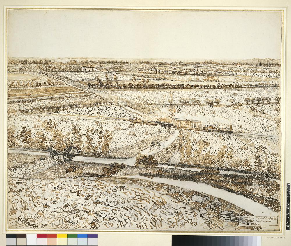 Reflecting on his 1888 drawing The Countryside along the Shore of the Rhone Seen from Montmajour, Van Gogh wrote to Emile Bernard: “An immense flat expanse of country — seen in bird’s-eye view from the top of a hill… streaming away like the surface of a sea towards the horizon… It doesn’t look Japanese, and yet it’s the most Japanese thing I’ve ever made.”